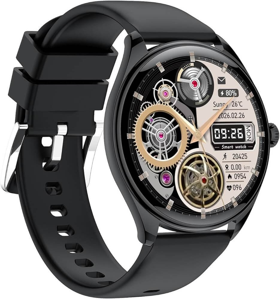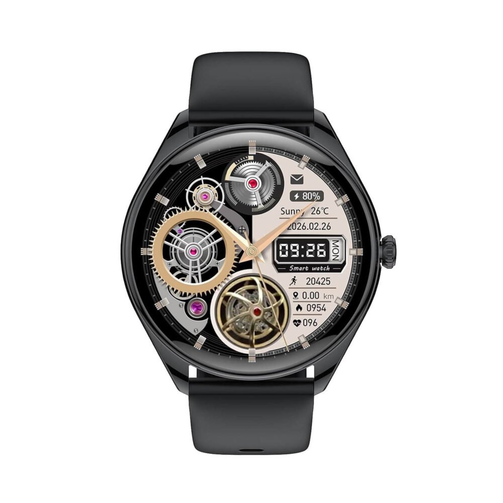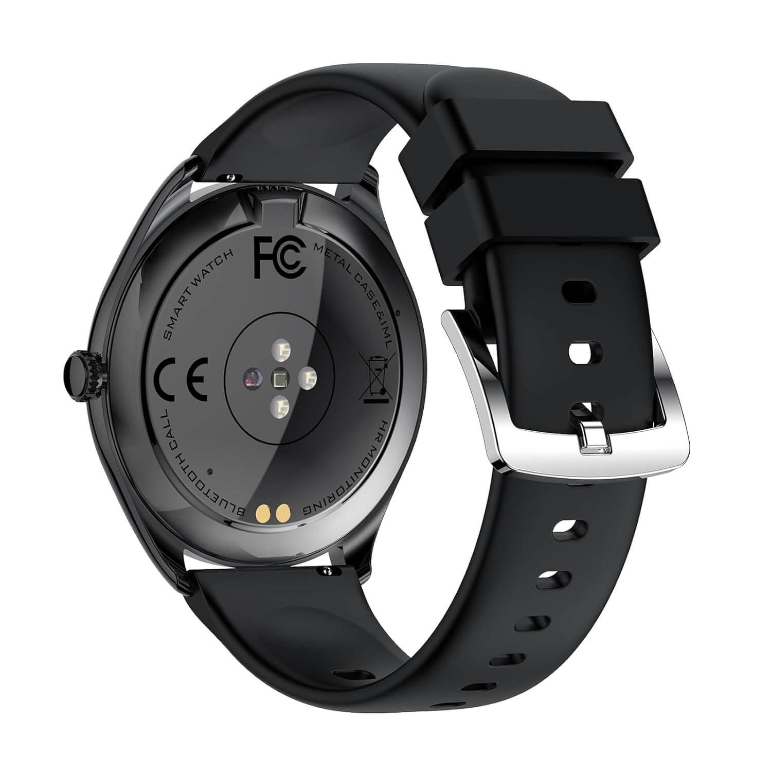 AMOLED смартчасовник черен V36 поддържа Bluetooth обаждания, контрол на музика, известия за обаждания, съобщения и социални мрежи, както и дистанционно управление на камерата. Въртящата се корона осигурява бърза и интуитивна навигация в менютата.