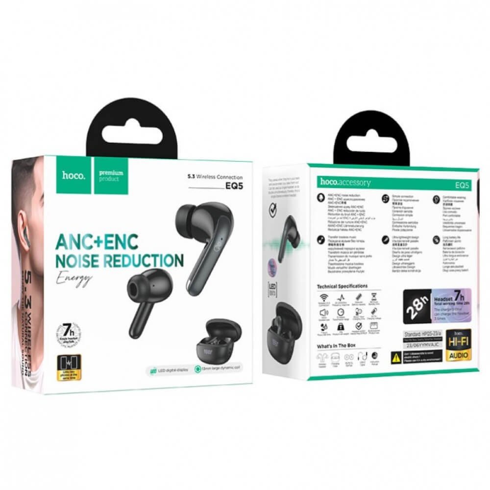 HOCO EQ5 използват ANC и ENC за потискане на околен шум, което гарантира чист звук и комфортни разговори.