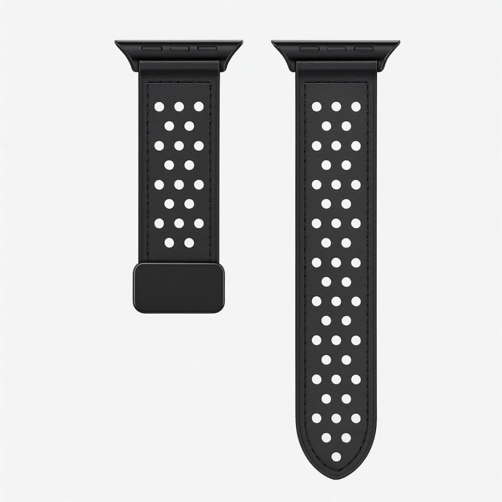 Основното предимство на този модел е магнитното закопчаване, което позволява лесно и прецизно регулиране според размера на ръката. Магнитната система осигурява стабилно и сигурно прилягане, без необходимост от класическа катарама. Това улеснява поставянето и свалянето на каишката и допринася за по-чист и модерен външен вид.