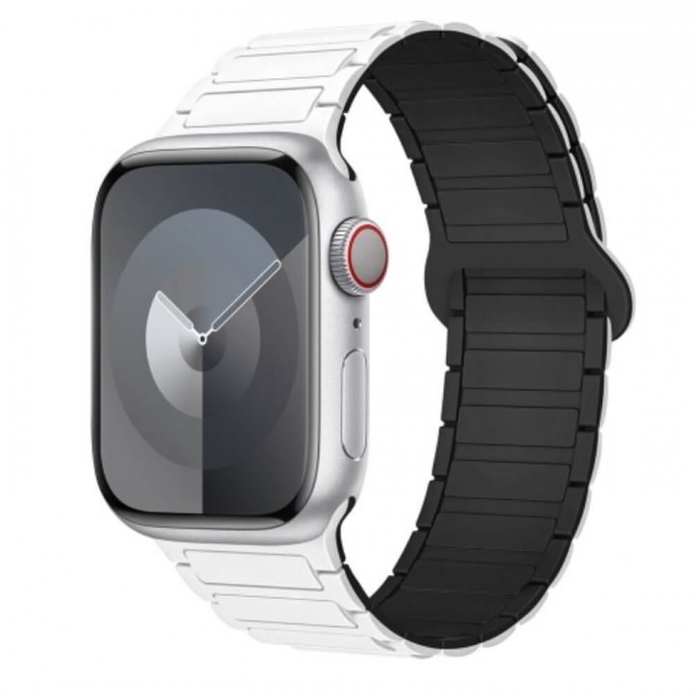 Подобри визията и удобството на своя смарт часовник с магнитна каишка Apple Watch, съчетаваща елегантен дизайн и практична функционалност. Каишката е изработена от висококачествен силикон, който е мек, устойчив на износване и приятен на допир, подходящ за целодневно носене.