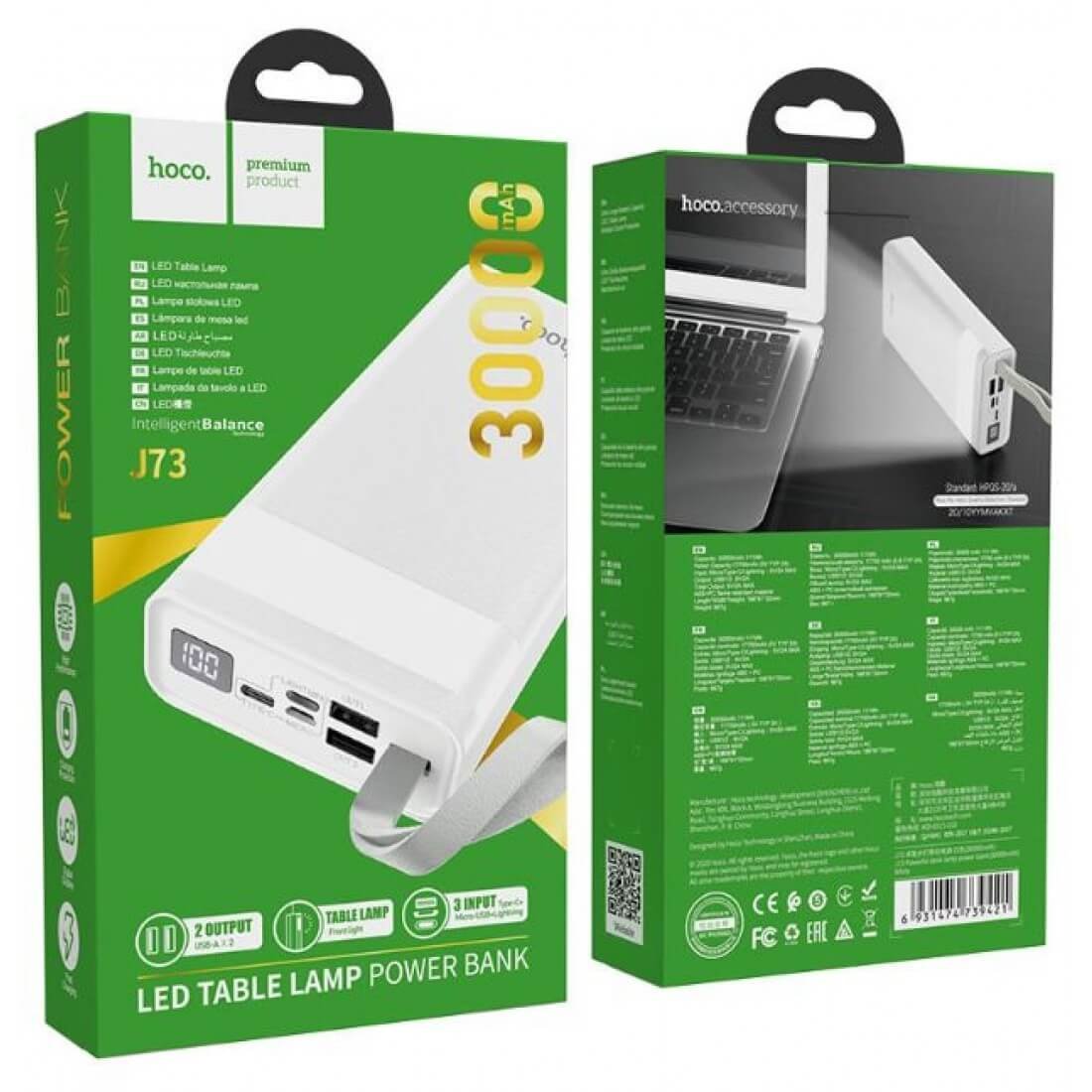 Преносима батерия 30000mAh HOCO J73 е създадена за хора, които търсят максимален капацитет и допълнителна функционалност. Тази преносима батерия 30000mAh комбинира голям енергиен резерв със вградена LED настолна лампа, което я прави отличен спътник при пътувания, къмпинг, аварийни ситуации и ежедневна употреба. Освен това, здравият корпус гарантира издръжливост при интензивна употреба, а удобната дръжка позволява лесно пренасяне.
