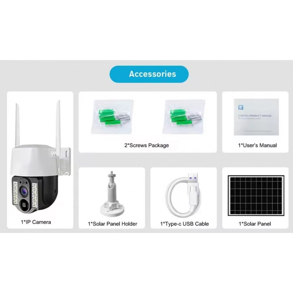 Цялото управление се извършва дистанционно през приложението V380 PRO, съвместимо с Android и iOS устройства.