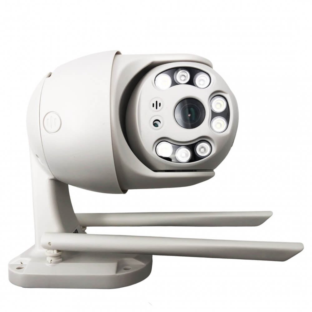 Камерата разполага с моторизиран PTZ механизъм, който позволява въртене и фокусиране върху конкретни зони. При засичане на движение, PIR датчиците активират аларма и изпращат известие към телефона ви. Записите могат да се преглеждат директно през приложението във всеки момент.
