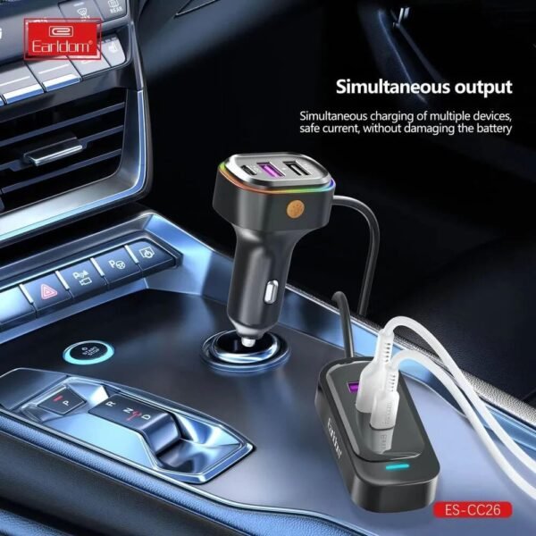 Това зарядно за автомобил разполага с три порта за гъвкаво използване: